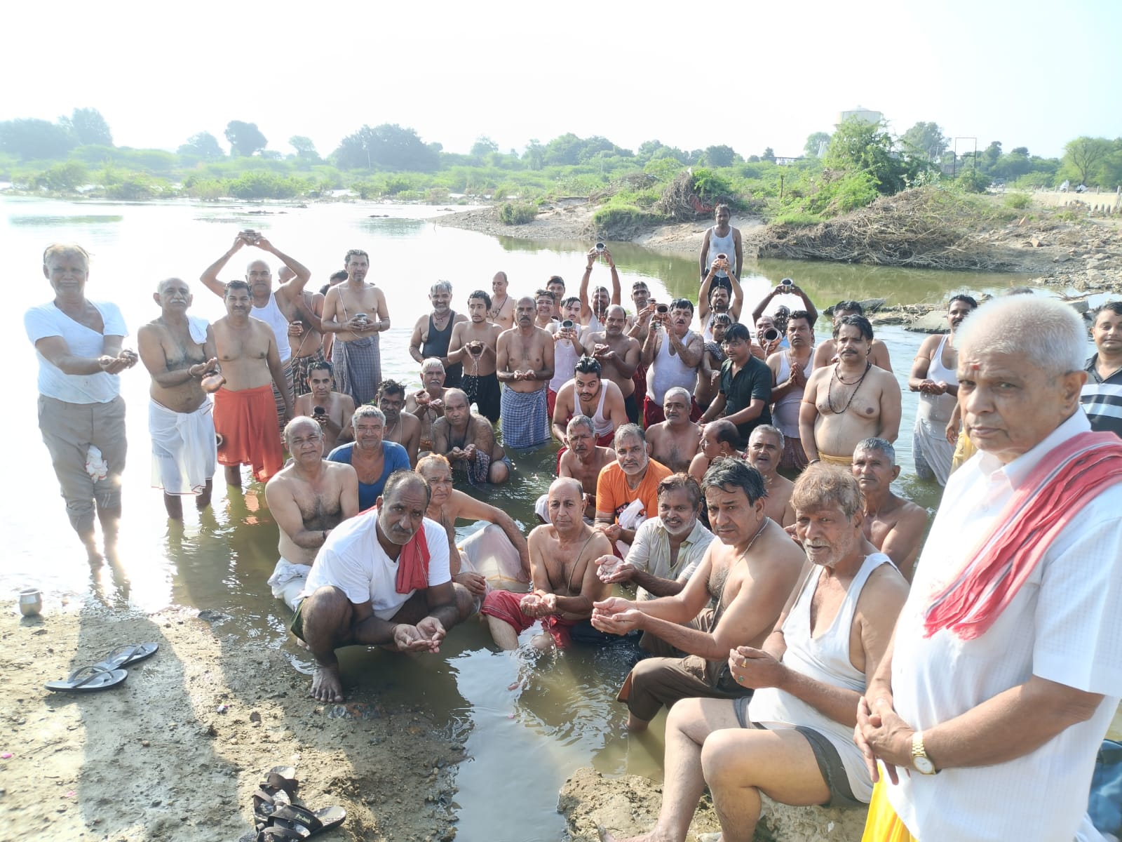 पाली। सर्वपितृ अमावस्या के पावन अवसर पर रविवार को श्री पुरनेश्वर धाम के निकट बहती सुकरी नदी के पवित्र जल में श्रद्धालुओं ने अपने-अपने पितृ देवताओं को सामूहिक जलांजलि अर्पित कर श्रद्धापूर्वक नमन किया। अनुष्ठान पंडित हरीशंकर बोहरा के सानिध्य में संपन्न हुआ।