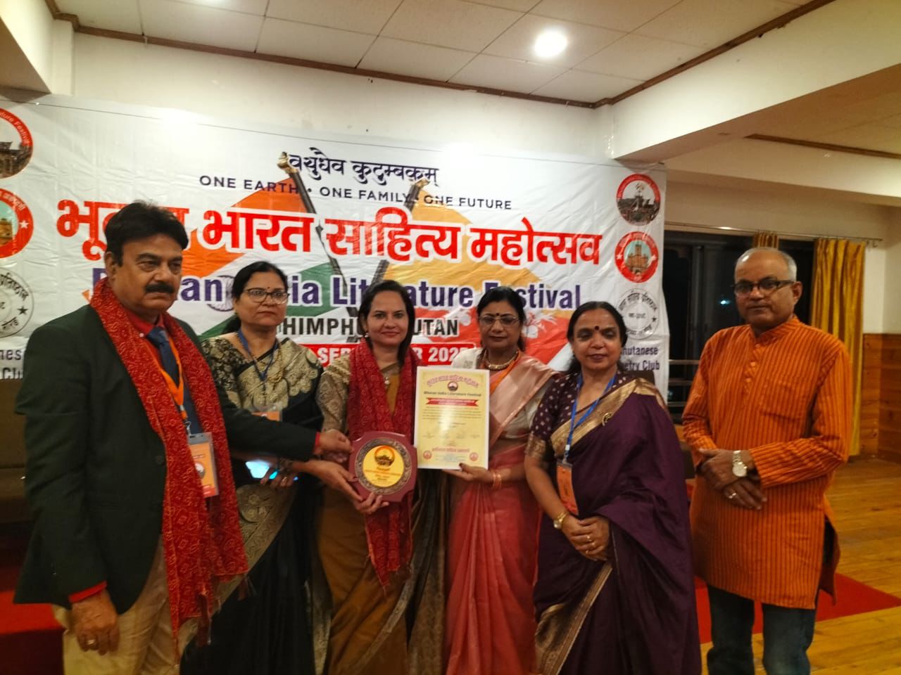 गत दिनों भूटान की राजधानी थिम्फू में हिंदी दिवस के अवसर पर “भूटान-भारत साहित्य महोत्सव” का भव्य आयोजन क्रांतिधरा साहित्य अकादमी के तत्वावधान में किया गया। इस दो दिवसीय महोत्सव में भारत के विभिन्न राज्यों से आए लगभग 68 विद्वानों तथा भूटान के प्रतिष्ठित साहित्यकारों ने अपनी साहित्यिक उपस्थिति दर्ज कराई।