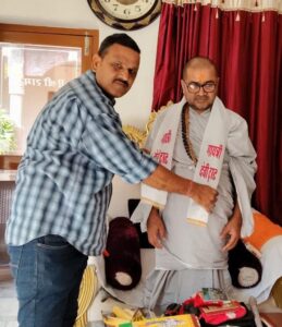जोधपुर। गायत्री देवी ट्रस्ट के संस्थापक चंद्रशेखर अरोड़ा ने बताया की सूरसागर स्थित बड़ा रामद्वारा पहुंचकर महंत परमहंस आदरणीय श्री रामप्रसाद जी महाराज से आशीर्वाद प्राप्त करने का सौभाग्य मिला।महाराज जी द्वारा गायत्री देवी ट्रस्ट के तत्वाधान में होने वाले 1 नवंबर 2025 को सर्वजातीय सामूहिक विवाह समारोह सियाराम परिणय महोत्सव के पोस्टर का विमोचन किया गया महाराजजी द्वारा सराहनीय कार्य के लिए बहुत-बहुत बधाई व शुभकामनाएं दी साथ ही 1 नवंबर 20 25को परिणय सूत्र में बंधने वाले सभी 51 जोड़ों को वैवाहिक जीवन शुरू करने की अग्रिम बधाई दी पोस्टर विमोचन के इस कार्यक्रम में चंद्रशेखर अरोड़ा प्रहलाद गोयल राजेश पुंगलिया आदि मौजूद रहे।