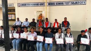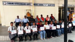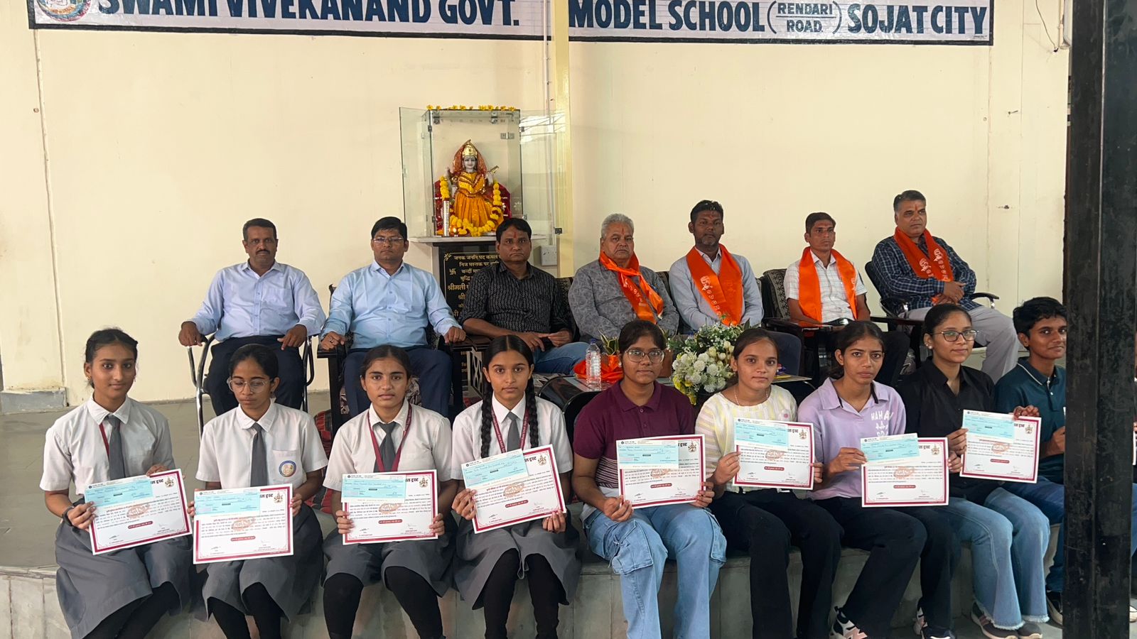 सोजत। सोजत सिटी रेन्दडी रोड रेन्दडी में स्वामी विवेकानंद मॉडल स्कूल, सोजत में आज एक प्रेरणादायक और गर्वपूर्ण आयोजन हुआ, जहाँ वर्ष 2024-25 में कक्षा 10 और 12 में 75 प्रतिशत या उससे अधिक अंक प्राप्त करने वाली प्रतिभावान बालिकाओं का विशेष सम्मान किया गया।