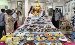 सोजत सिटी। दीपावली के अगले दिन सोजत सिटी स्थित प्राचीन चारभुजानाथ मंदिर में अन्नकूट महोत्सव श्रद्धा, उल्लास और भक्ति के वातावरण में संपन्न हुआ। सुबह से ही भक्तों की भीड़ उमड़ पड़ी। सायंकाल भगवान श्री चारभुजानाथ का अलौकिक श्रृंगार, विशेष पूजा-अर्चना व महाआरती संपन्न हुई, जिसके उपरांत 56 प्रकार के व्यंजनों से सजे अन्नकूट भोग का समर्पण किया गया। मंदिर परिसर पुष्पों, दीपमालाओं और रोशनी से आलोकित रहा। “चारभुजानाथ महाराज की जय” के जयघोषों से वातावरण गूंज उठा। महाआरती के बाद अन्नकूट प्रसाद वितरण आरंभ हुआ, जिसमें हजारों श्रद्धालुओं ने पंक्तिबद्ध होकर प्रसाद ग्रहण किया।