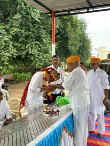 गांव के प्रधान विद्यालय परिवार और ग्रामीणों ने महेन्द्र शर्मा का साफा पहनाकर माल्यार्पण करते हुए भव्य स्वागत किया गांव में उत्सव जैसा माहौल रहा और हर किसी के चेहरे पर यही संदेश था कि जिसने गांव को ज्ञान का दीप दिया वही सच्चा समाज रत्न कहलाने का हकदार है