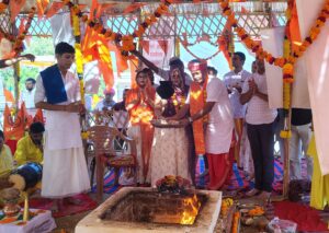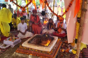 हर हर महादेव की धुन लगाई। महेश्वर महादेव मंदिर में प्राण प्रतिष्ठा में पूर्णाहुति में सैकड़ो श्रद्धालु भक्त पीतांबर धारी ब्राह्मण गणवेश यज्ञ मंडप में पूर्णाहुति देकर आरती आनंद लिया।
