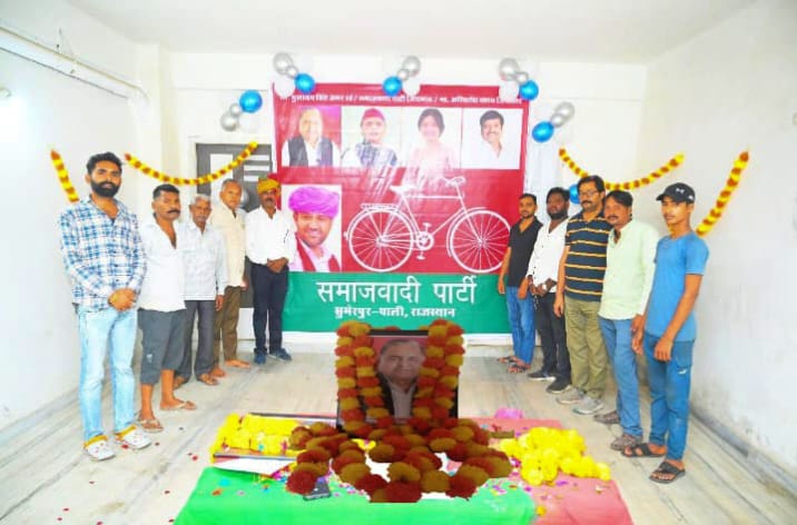 सुमेरपुर/पाली। समाजवादी पार्टी के संस्थापक पद्मविभूषण स्व मुलायम सिंह यादव पूर्व रक्षा मंत्री एवं उत्तर प्रदेश के पूर्व मुख्यमंत्री धरती पुत्र नेताजी की जयंती पर भावपूर्ण श्रद्धांजलि प्रदेश अध्यक्ष तेजराज यादव के निर्देशानुसार रणजीत सिंह यादव प्रदेश महामंत्री के द्वारा कार्यकर्ताओं के साथ नेता जी को भावपूर्ण श्रद्धांजलि दी गई। जिसमें सम्भाग प्रमुख सुनील भाटी, जिला अध्यक्ष सूरज बोराणा, कारण चौहान, पप्पू भाई, विनोद गहलोत, प्रकाश बोराणा, रामजी सिंह यादव, किशन यादव, गोविंद परमार, जीतू परमार सहित काफी संख्या में कार्यकर्ता मौजूद रहे रणजीत सिंह यादव प्रदेश महामंत्री के द्वारा नेता जी द्वारा किए गए संघर्ष की जानकारी दी।