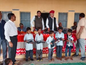 को विद्यार्थियों के लिए यादगार दिन साबित हुआ। भामाशाहों के सहयोग से कक्षा 1 से 12 तक के सभी छात्रों को स्कूल बैग, टाई, बेल्ट और मोज़े वितरित किए गए। वितरण कार्यक्रम का माहौल उत्साह, उमंग और मुस्कुराहटों से भर उठा।