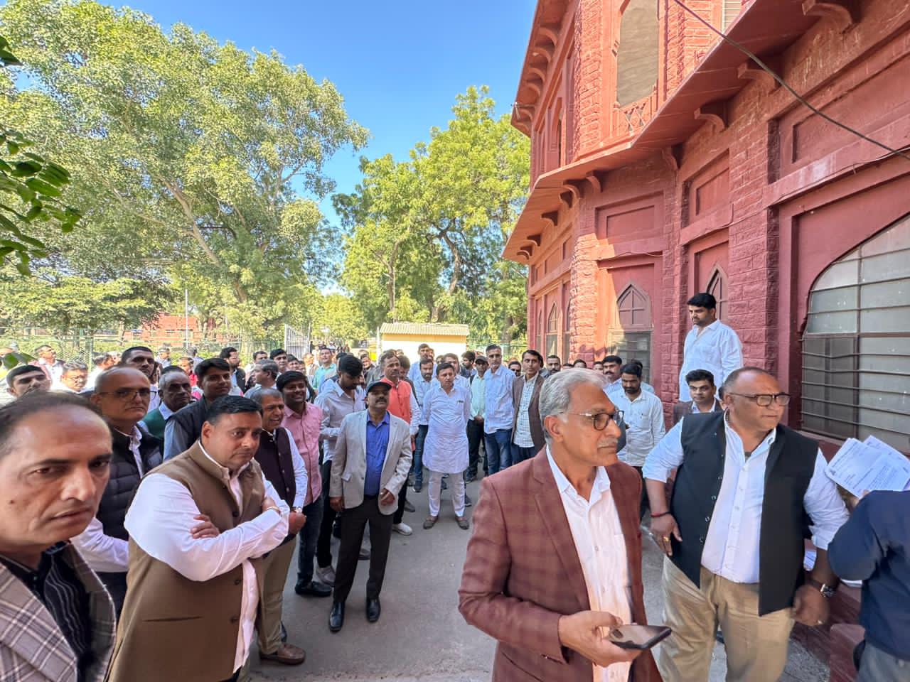 जोधपुर। जयनारायण व्यास विश्वविद्यालय के मुख्य परिसर में सोमवार को शिक्षा व्यवस्था की संवेदनशीलता पर गंभीर सवाल खड़े करने वाला दृश्य सामने आया। जोधपुर संभाग के समस्त निजी महाविद्यालयों के डायरेक्टर, अध्यक्ष, सचिव एवं प्रतिनिधि मंडल विद्यार्थियों से जुड़ी गंभीर समस्याओं को लेकर विश्वविद्यालय पहुंचे, लेकिन कुलपति कार्यालय के बाहर उन्हें दो से तीन घंटे तक सड़क पर बैठकर इंतज़ार करना पड़ा।