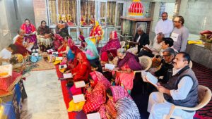सोजत रोड । वरिष्ठ नागरिक समिति सोजतरोड द्वारा नगर के गणेश मंदिर में आयोजित श्री रामचरितमानस नवाह्न पारायण पाठ के चौथे दिन राम-राज्याभिषेक की तैयारी, कैकयी के दो वचन, रघुकुल रीत निभाते राम सीता लक्ष्मण का वन गमन, निषाद राज व केवट के निश्छल प्रेम के प्रसंगों का वाचन किया । राधे महिला मंडल की कमला चौधरी, इन्द्रा प्रजापति, कमला नाथ संग शिवराम सैनी व शकुन्तला जांगला ने चंदा छुप जा रे बादल में मारो राम गयो बनबास भजन की मार्मिक प्रस्तुति से श्रद्धालुओं का हृदय द्रवित कर दिया । बाल कलाकार खुशवंत व मोहित गिरी ने ढोलक पर संगत की । आचार्य गोपाल शास्त्री ने सपत्नीक परिवार संग राम दरबार, रामचरितमानस पोथी, शिव-पार्वती, रिद्धि सिद्धि विनायक, राधा कृष्ण व बालाजी महाराज की पूजा अर्चना की । वरिष्ठजन मगराज चौधरी, प्रीतम मित्तल, अवधेश तिवारी, दाऊदयाल व्यास, गजेन्द्र सोनी संग राधा माहेश्वरी, हेमलता माहेश्वरी, निशा शर्मा महिला दल ने मेरी छोटी सी है नाव, तेरे जादू भरे पांव गाकर केवट की निश्छल प्रेम भरी विनती का गान किया । पुजारी चंद्रप्रकाश शर्मा ने रामायणजी की सामुहिक आरती के साथ पाठ का चतुर्थ विश्राम किया ।