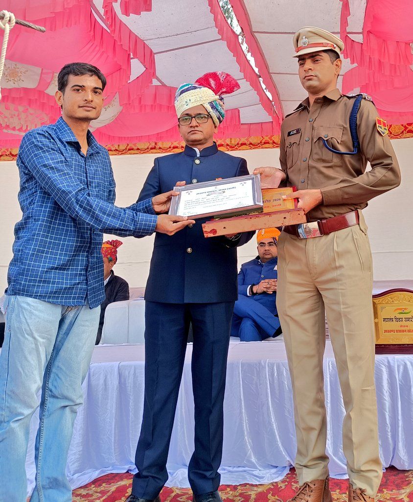 उपखंड स्तरीय कार्यक्रम में उपखंड अधिकारी श्री मसिंग़ाराम जांगिड एवं पुलिस उप अधीक्षक श्री रतनाराम देवासी द्वारा श्री नरेश वैष्णव को सम्मान पत्र एवं मोमेंटो प्रदान कर सम्मानित किया गया।